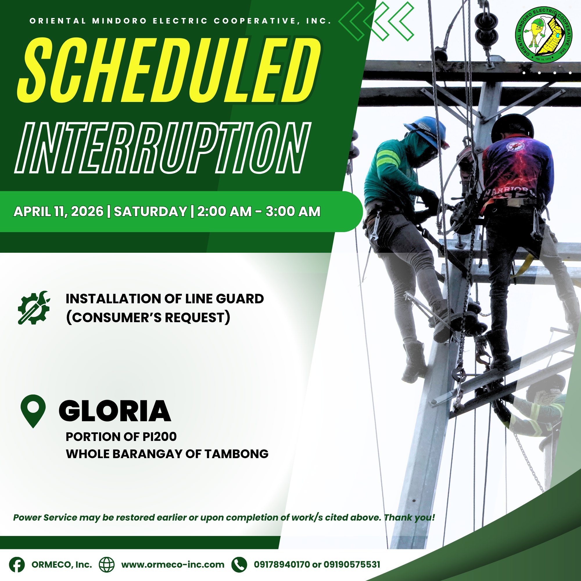 Patuloy ang panawagan na iwasan ang ilegal na koneksyon at agad i-report ang mga kahina-hinalang aktibidad sa ORMECO Helpline Numbers