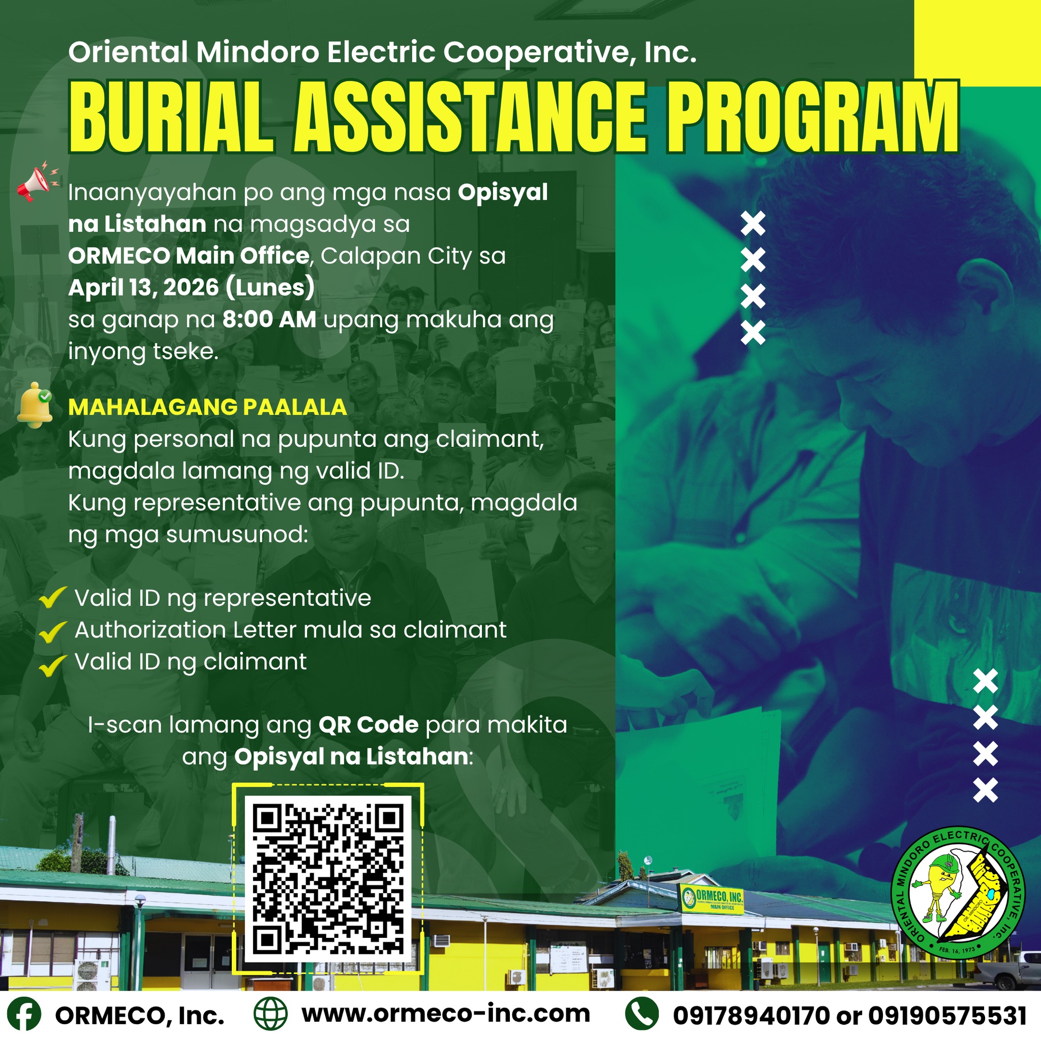 Huwag kalimutang dalhin ang inyong Senior Citizen ID at iba pang dokumento sa pinakamalapit na ORMECO office para sa inyong aplikasyon. Mahalaga po ang bawat bawas sa singil!