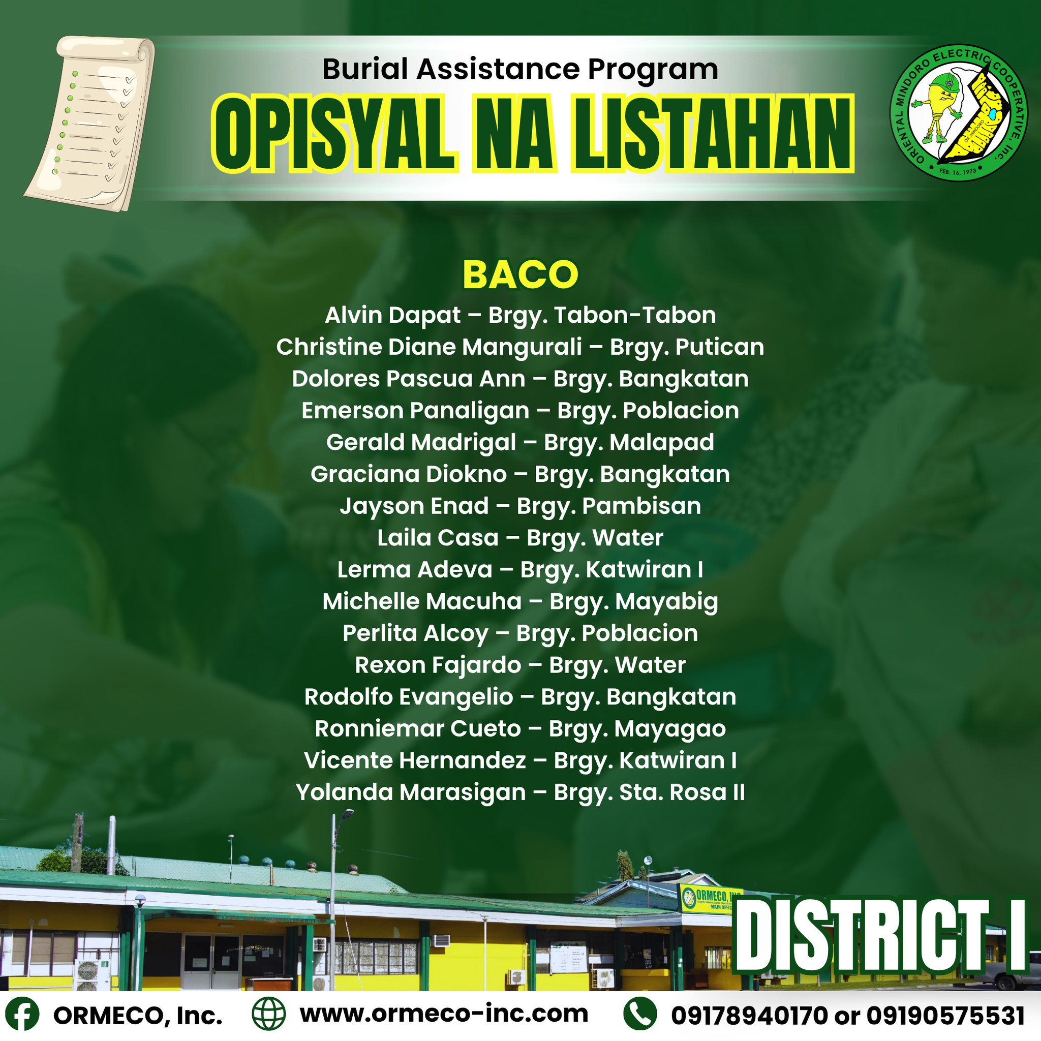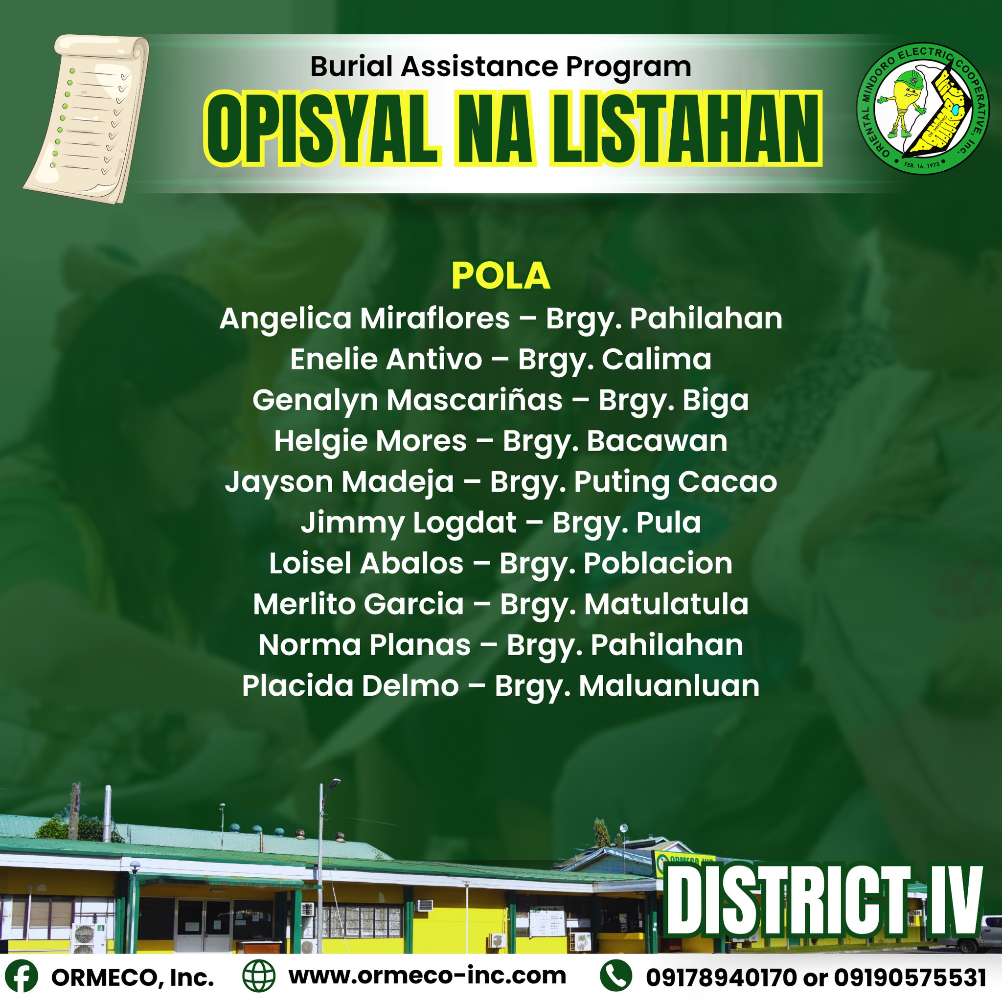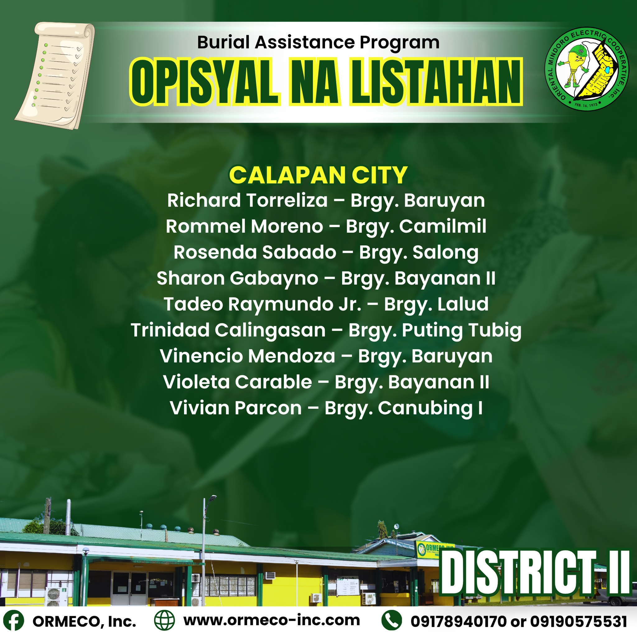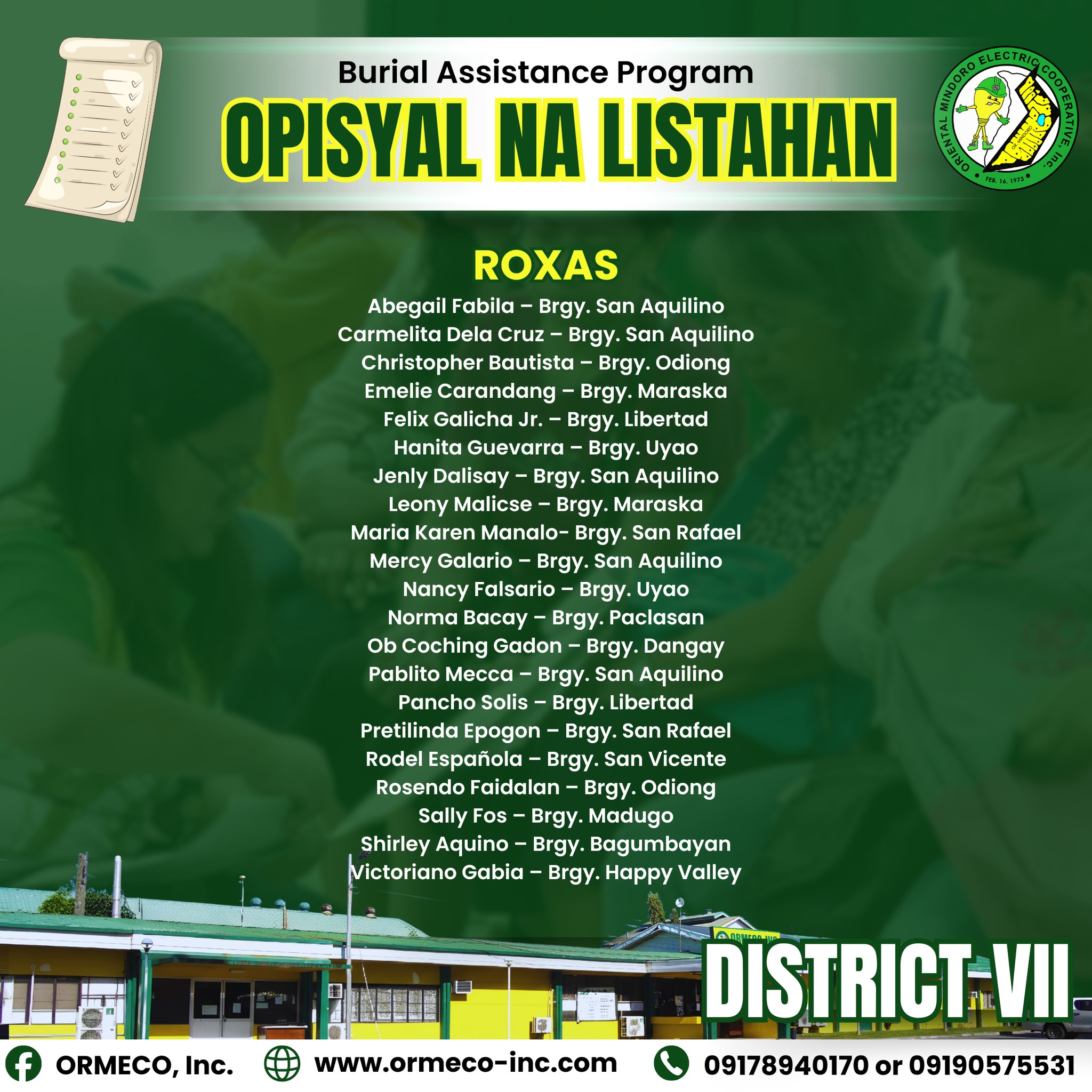 sa tulong ng OREMPCO (ORMECO Multipurpose Cooperative), bilang pagkilala sa kanilang patuloy na ambag at dedikasyon sa serbisyo.